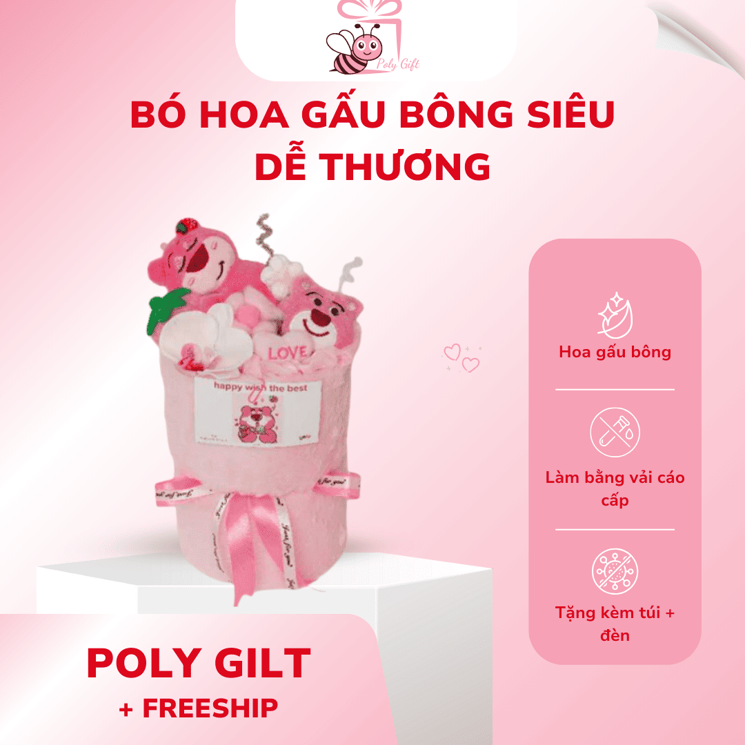 BÓ HOA GẤU BÔNG HULO TOYS BỌC VẢI MỀM MẠI DỄ THƯƠNG CAO CẤP, GẤU NHỒI BÔNG, GẤU DÂU