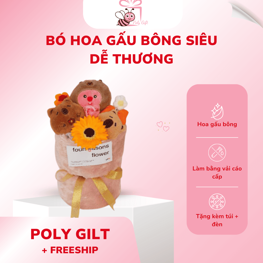 – Bó hoa gấu bông sử dụng 100% Cotton, vải nỉ bông với độ đàn hồi cao, các cậu chỉ cần điều chỉnh nhẹ khi nhận hàng là sẽ về form như hình