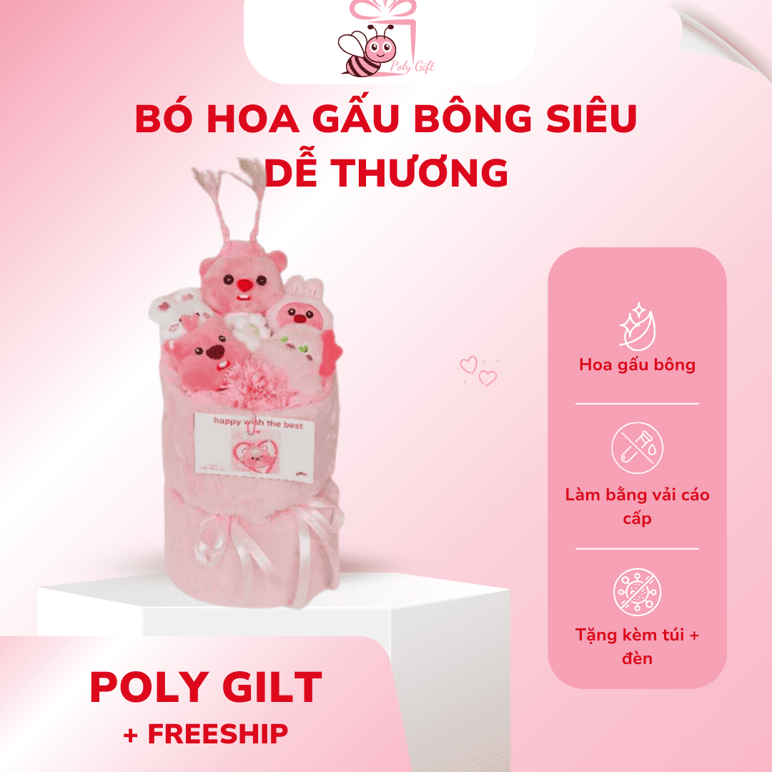 – Bó hoa gấu nhồi bông được tặng kèm đèn LED, hộp và thiệp như trong hình sản phẩm, cho sản phẩm thêm phần lung linh và thu hút
